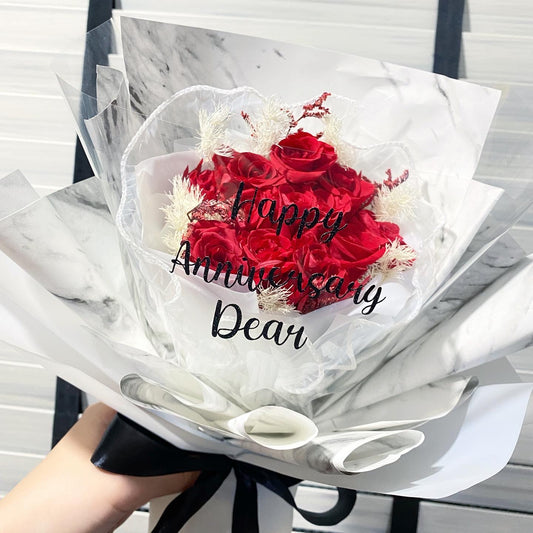 • 33 Stalks - '' One & Only Love'' Red Soap Roses Bouquet