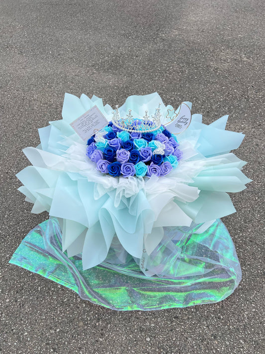 52 Stalks Soap Roses in Fantasy Dream Holographic (Blue)