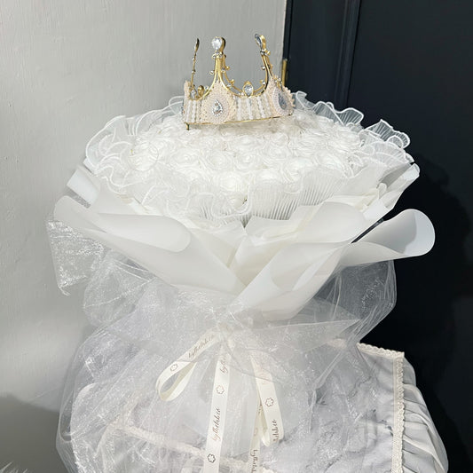 99 Stalks White Preserved Roses in Dreamy White with Crown