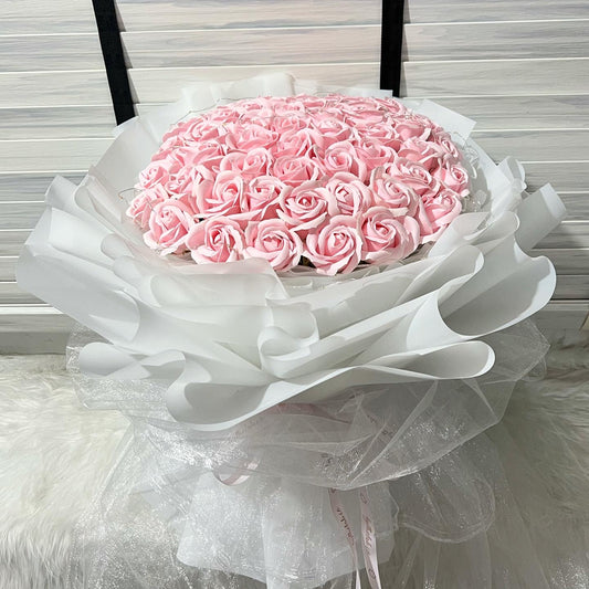 52 Stalks Pink Soap Roses in Dreamy White
