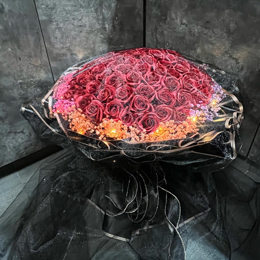 52 Stalks Red Soap Roses with Preserved Baby breath in Dreamy black