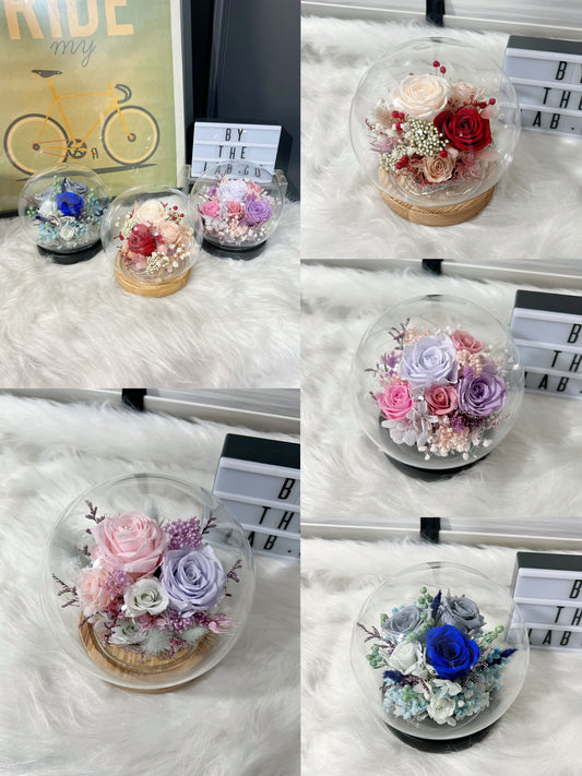 All Glass Domes comes with battery operated lights. (AAA Battery)