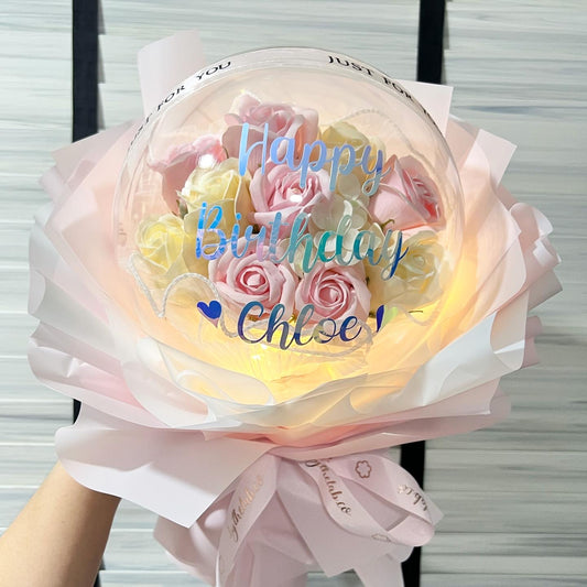 Acrylic Ball Bouquet with 9 Stalks Soap Roses - Pink Champagne