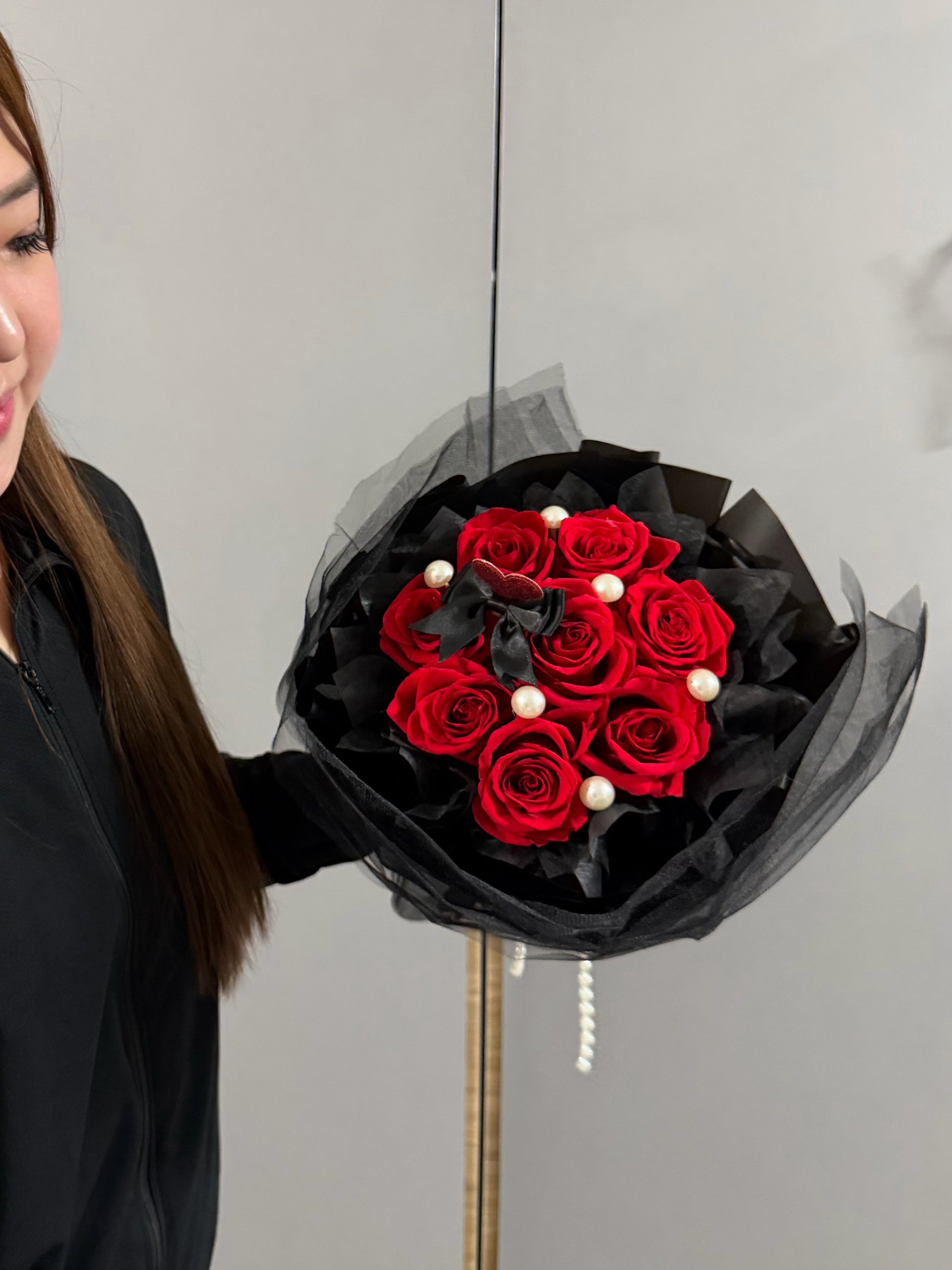 Dreamy Mesh Preserved Roses Bouquet in Red Roses