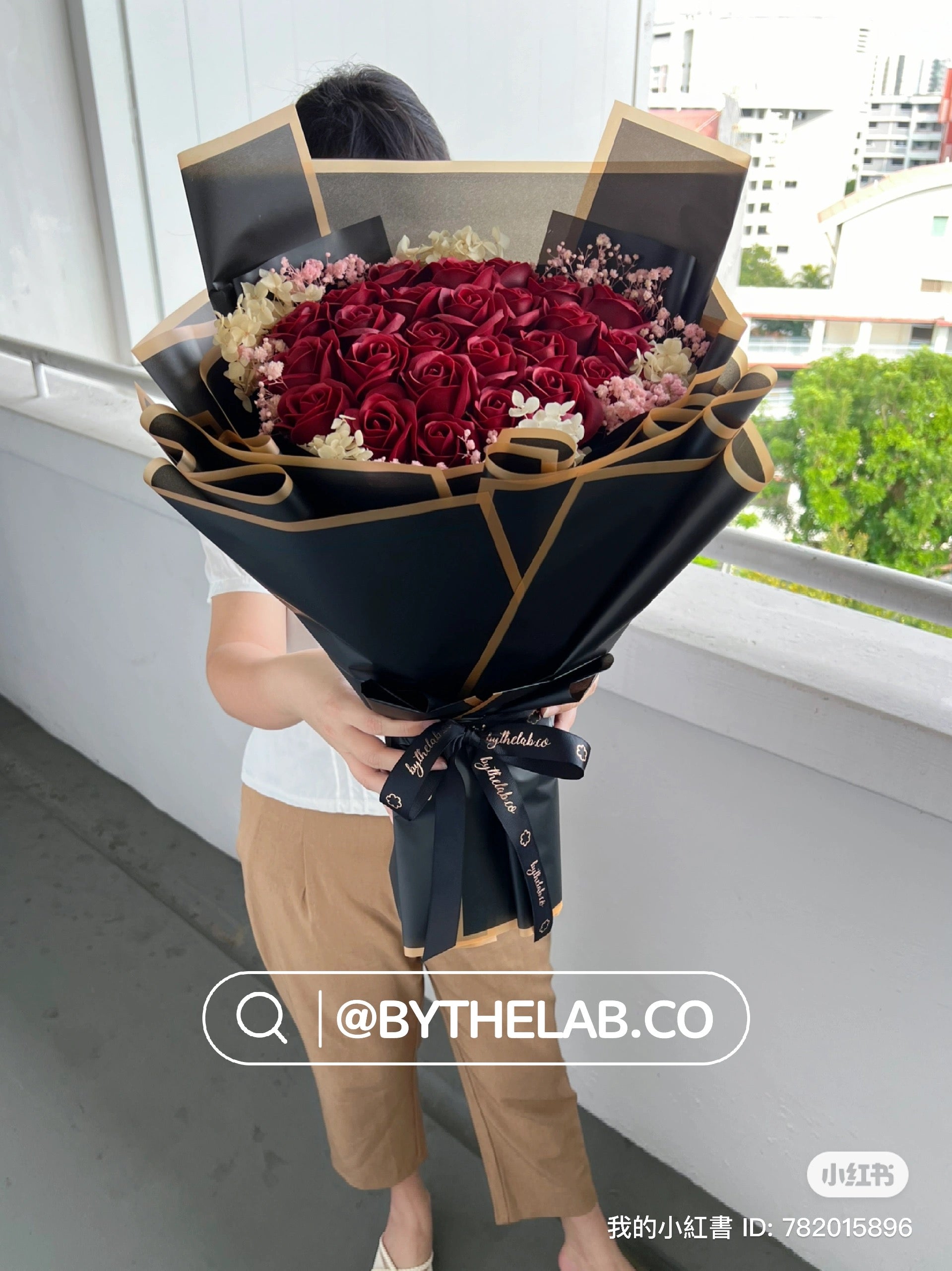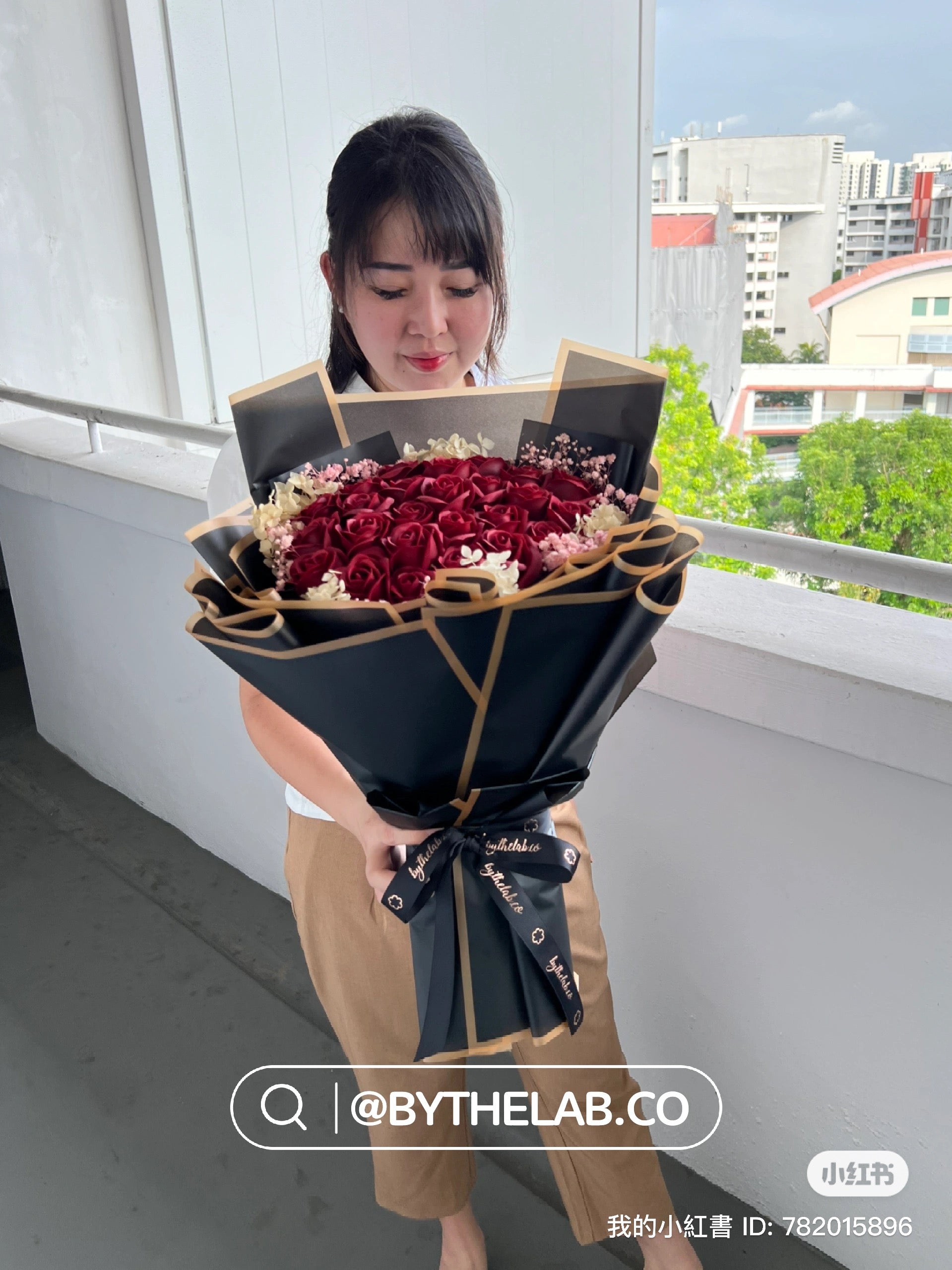 Signature 25 Stalks Red Soap Roses in Gold Trim Lining Wrapper
