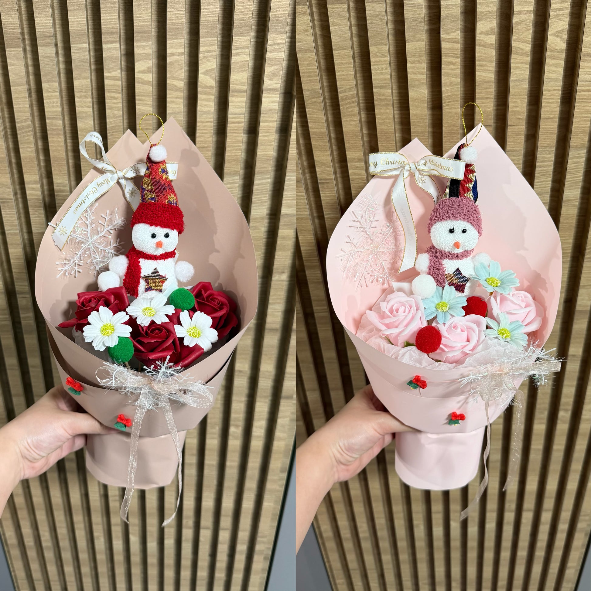 Comes with 3 Stalks Soap Roses and daisy with Snowman Decoration!